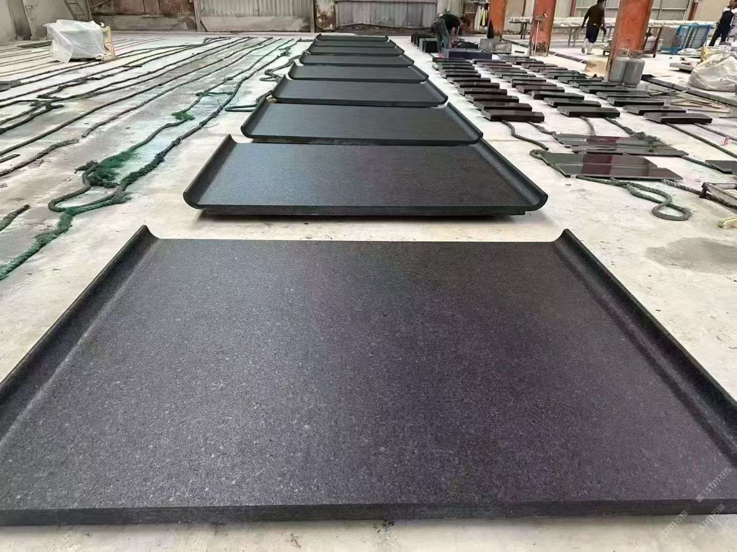 專注歐美訂單出口 服務廈門及山東貿易公司 工廠共有大切34臺 定做塔式大切2臺 可以3500×1450×15mm 厚度±1mm 年出口山水巖 山東654 70萬㎡。