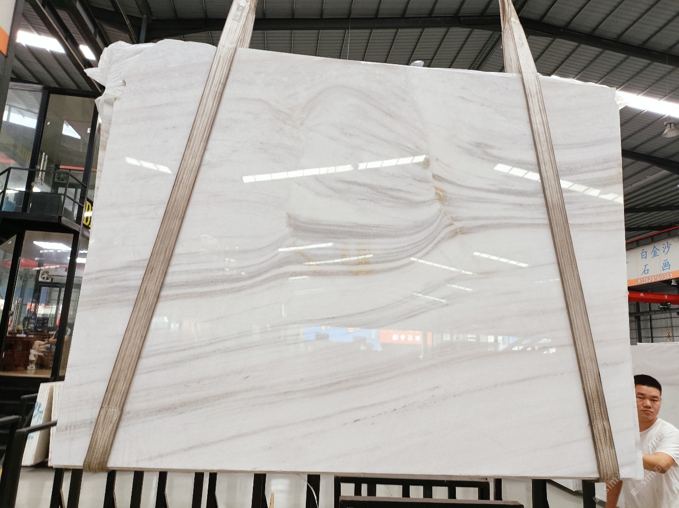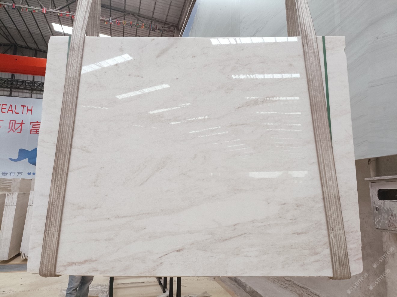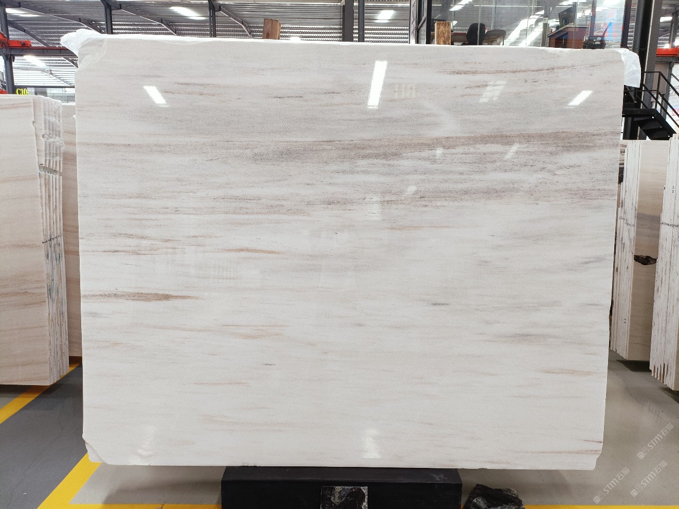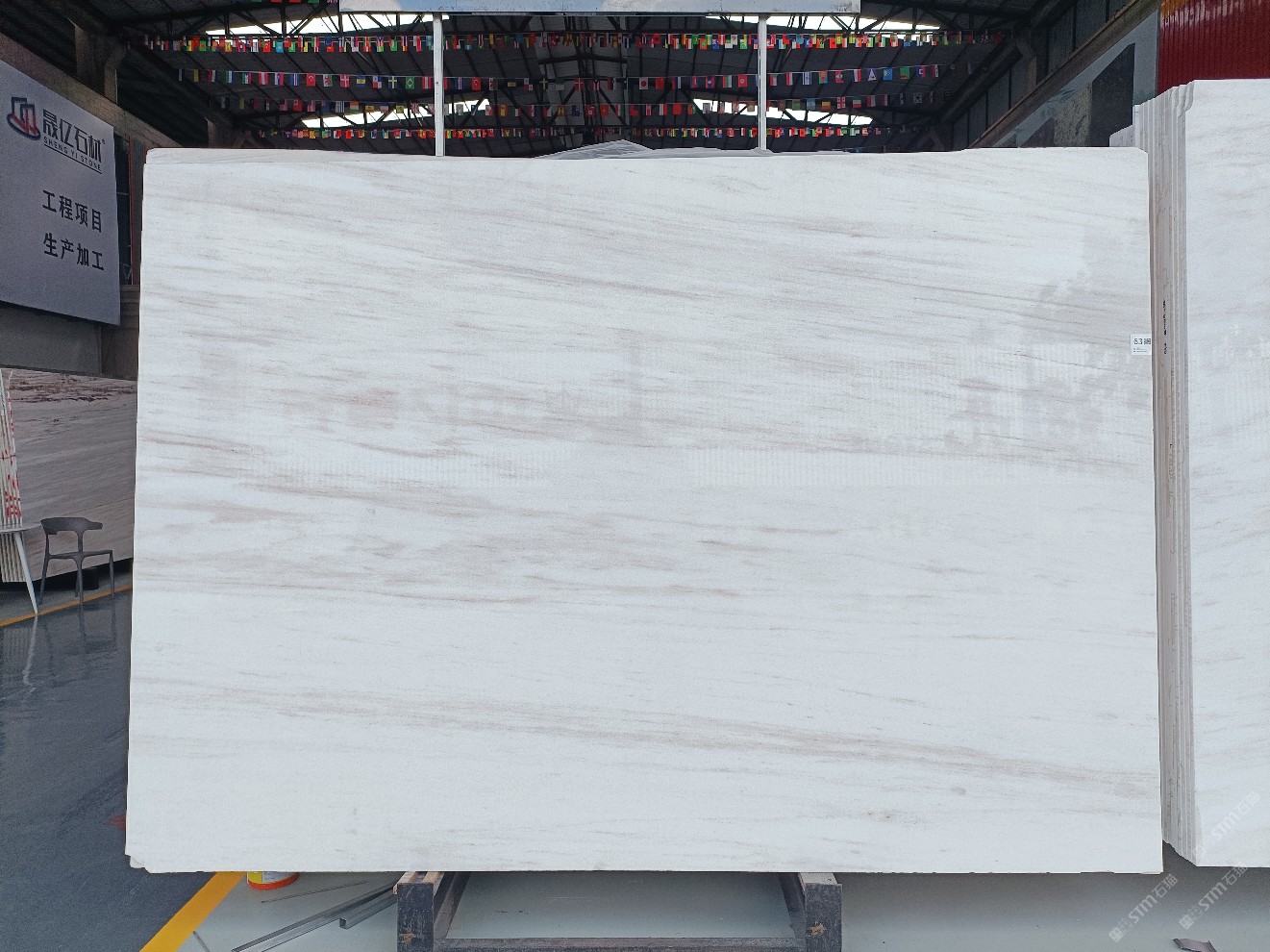 云浮站石材公司開(kāi)發(fā)的歐亞白獨(dú)立礦山,專屬道路,礦口面積約 725 畝,證件齊全。今年礦口開(kāi)采出直紋,亂紋優(yōu)質(zhì)大板材料,礦山采用單面墻平臺(tái)開(kāi)采方式,10臺(tái)繩鋸、5臺(tái)鏟車、5臺(tái)勾機(jī)、一臺(tái) 30 噸叉車,共有職工40人,已有兩個(gè)開(kāi)采平臺(tái)。礦山已開(kāi)采多年,道路、設(shè)施都已成熟,現(xiàn)產(chǎn)能穩(wěn)定增長(zhǎng)。品質(zhì)非常穩(wěn)定,一石兩面分別可以產(chǎn)出直紋和亂紋兩種紋路,材質(zhì)為細(xì)膩的玉質(zhì)品體。