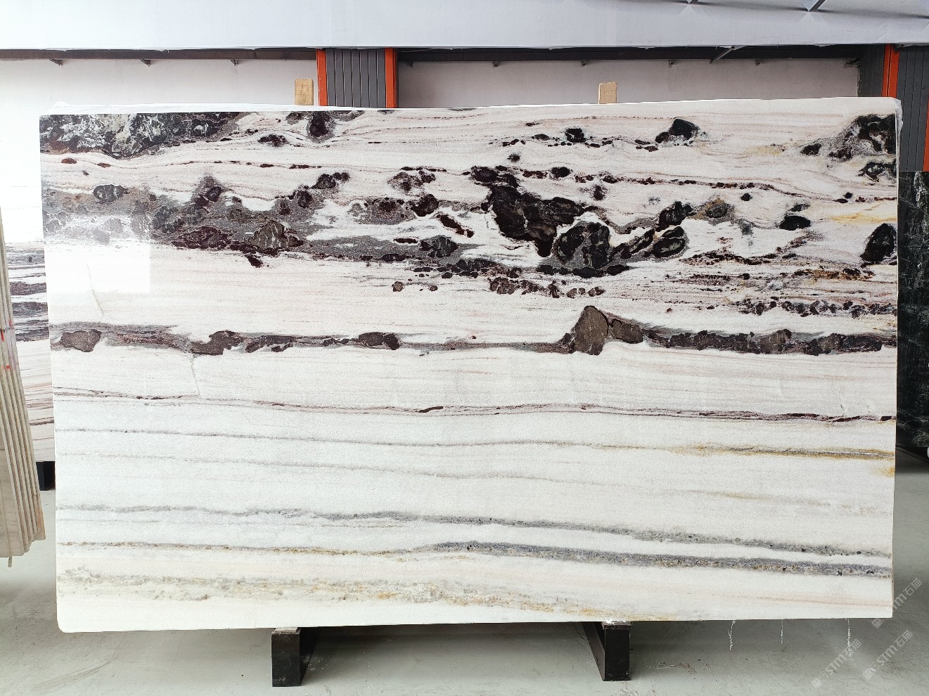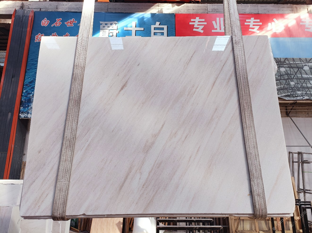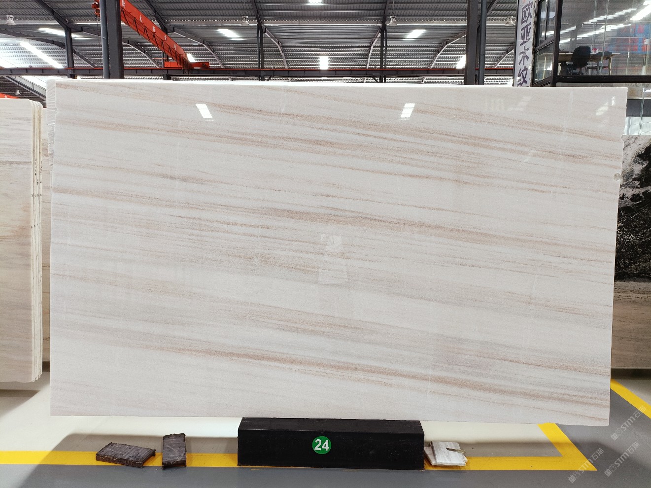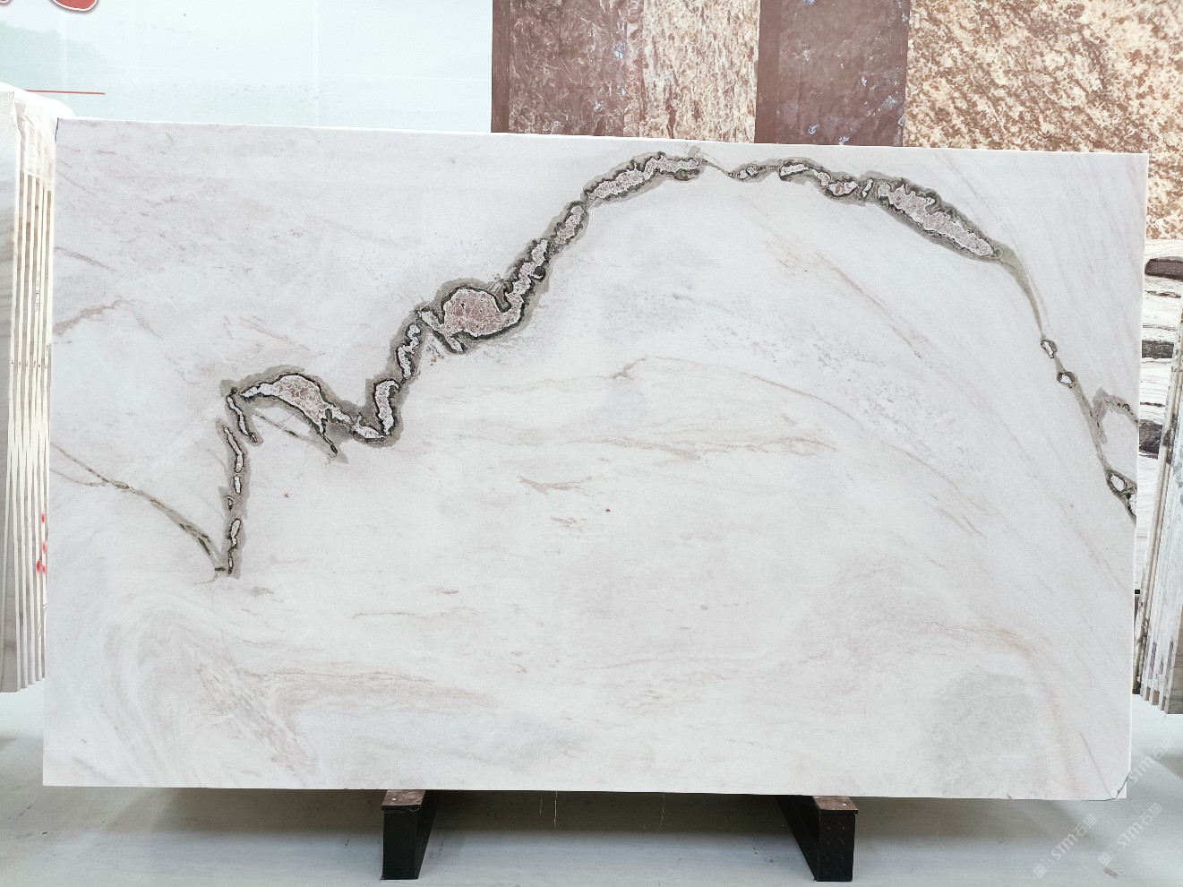 云浮站石材公司開(kāi)發(fā)的歐亞白獨(dú)立礦山,專屬道路,礦口面積約 725 畝,證件齊全。今年礦口開(kāi)采出直紋,亂紋優(yōu)質(zhì)大板材料,礦山采用單面墻平臺(tái)開(kāi)采方式,10臺(tái)繩鋸、5臺(tái)鏟車、5臺(tái)勾機(jī)、一臺(tái) 30 噸叉車,共有職工40人,已有兩個(gè)開(kāi)采平臺(tái)。礦山已開(kāi)采多年,道路、設(shè)施都已成熟,現(xiàn)產(chǎn)能穩(wěn)定增長(zhǎng)。品質(zhì)非常穩(wěn)定,一石兩面分別可以產(chǎn)出直紋和亂紋兩種紋路,材質(zhì)為細(xì)膩的玉質(zhì)品體。