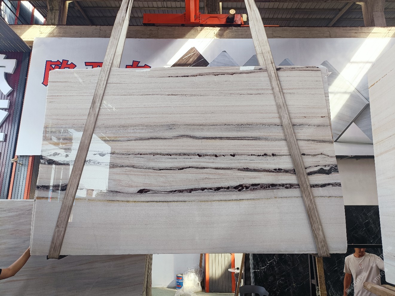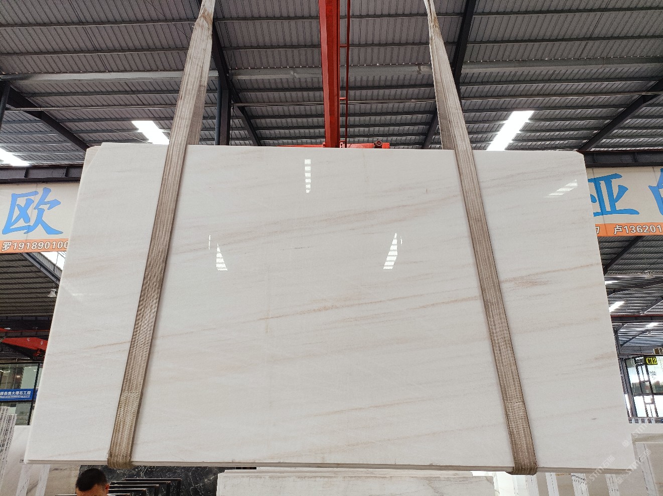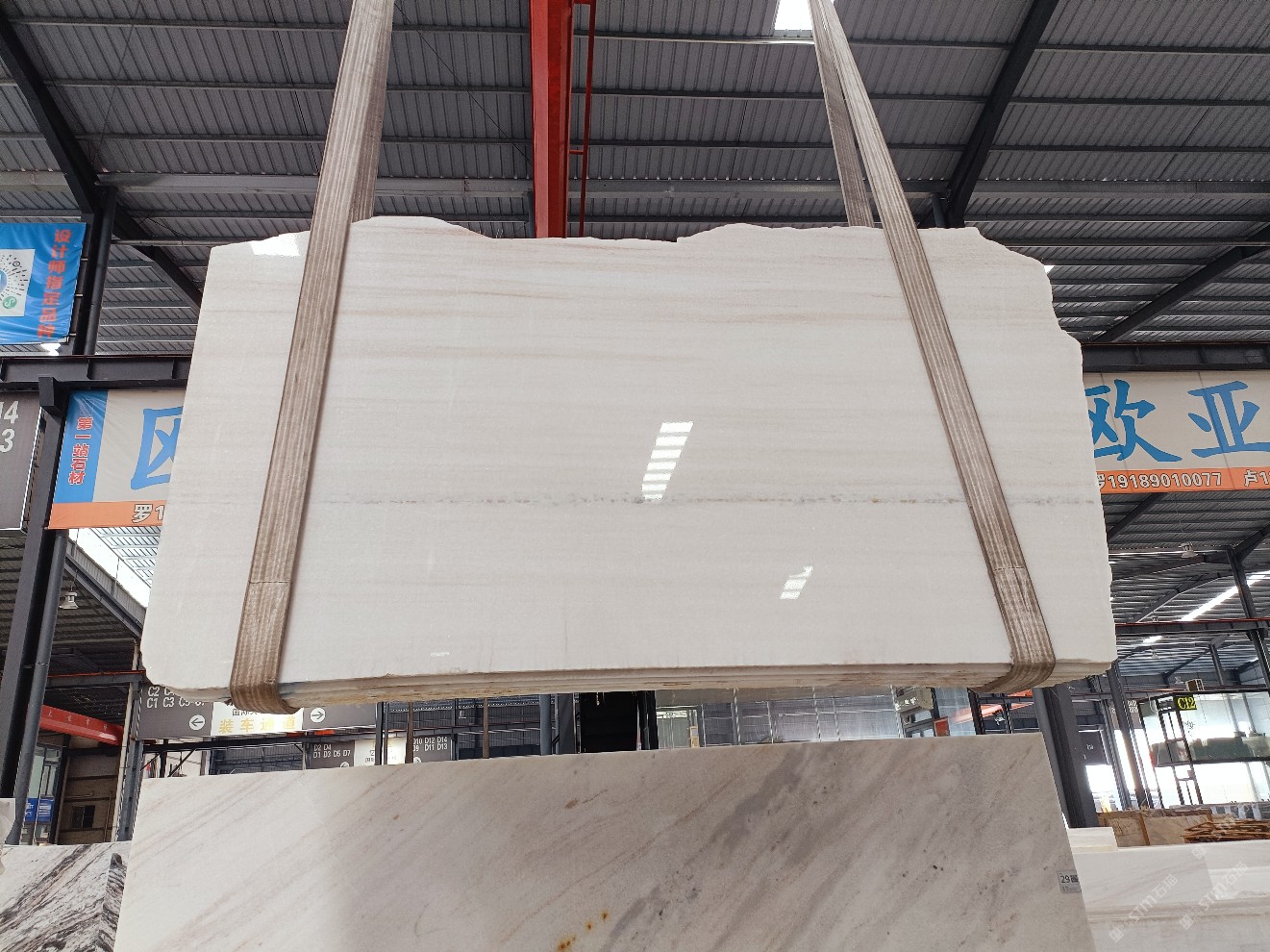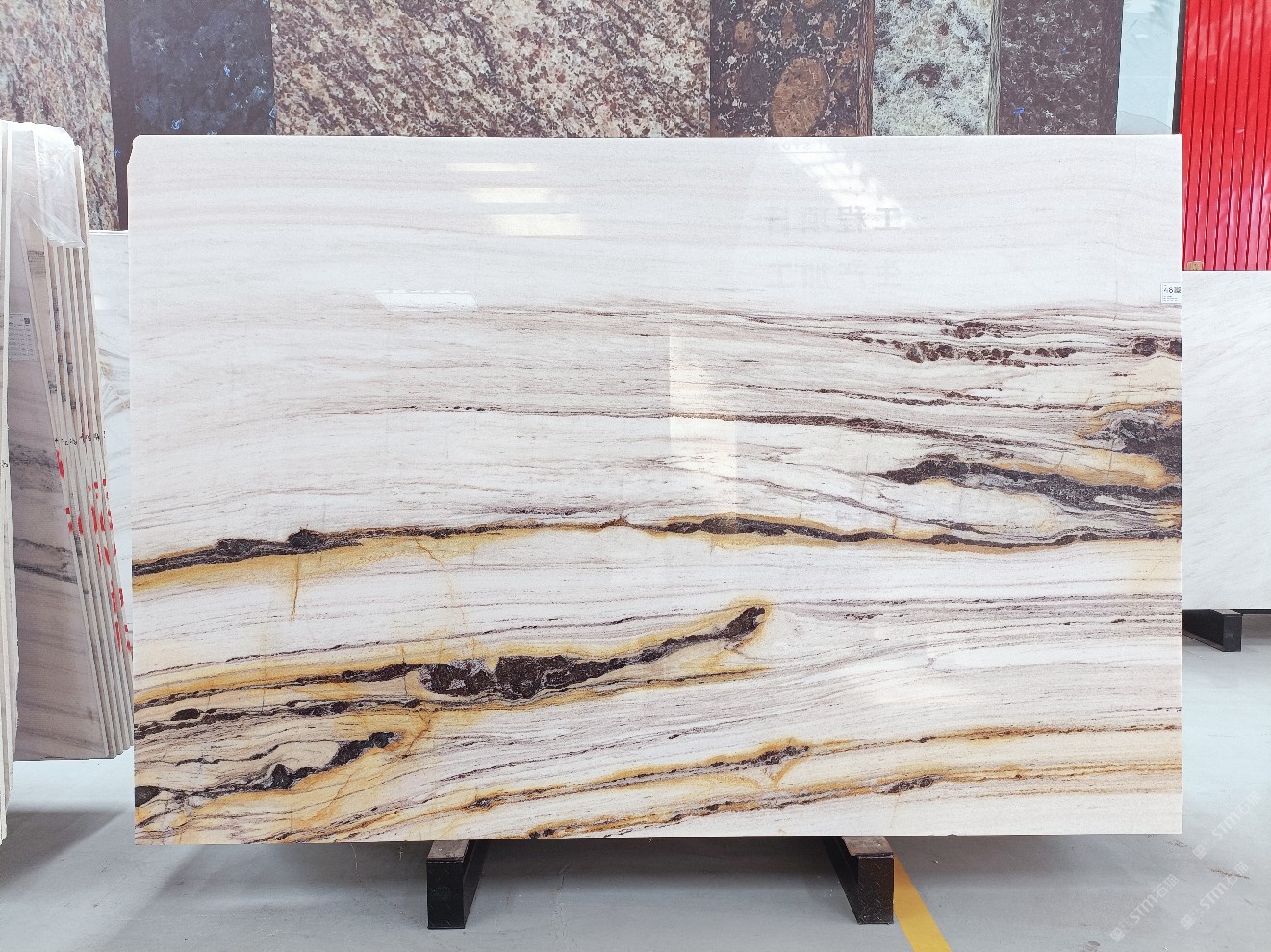 云浮站石材公司開(kāi)發(fā)的歐亞白獨(dú)立礦山,專屬道路,礦口面積約 725 畝,證件齊全。今年礦口開(kāi)采出直紋,亂紋優(yōu)質(zhì)大板材料,礦山采用單面墻平臺(tái)開(kāi)采方式,10臺(tái)繩鋸、5臺(tái)鏟車、5臺(tái)勾機(jī)、一臺(tái) 30 噸叉車,共有職工40人,已有兩個(gè)開(kāi)采平臺(tái)。礦山已開(kāi)采多年,道路、設(shè)施都已成熟,現(xiàn)產(chǎn)能穩(wěn)定增長(zhǎng)。品質(zhì)非常穩(wěn)定,一石兩面分別可以產(chǎn)出直紋和亂紋兩種紋路,材質(zhì)為細(xì)膩的玉質(zhì)品體。