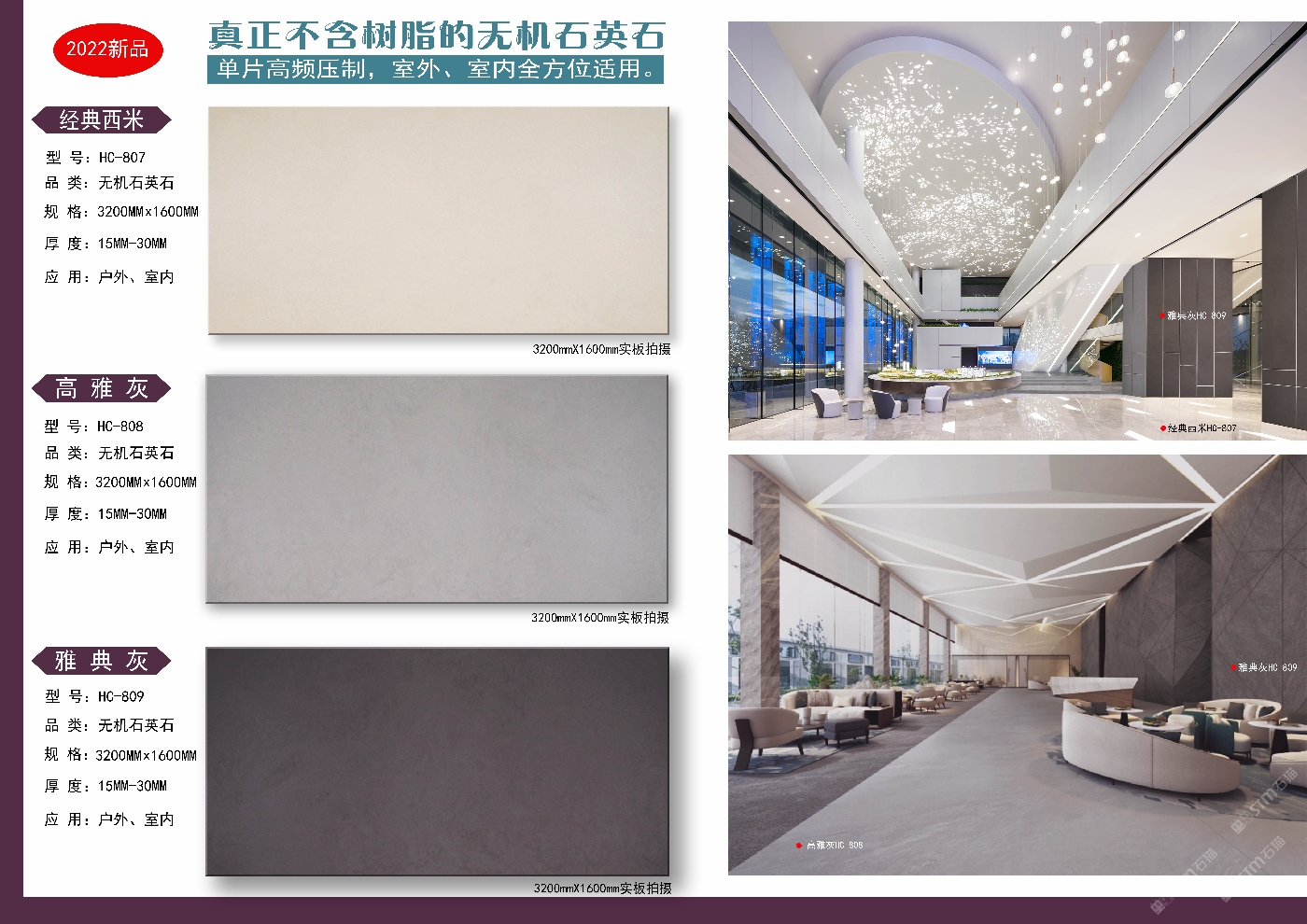 專業(yè)研發(fā)生產(chǎn)銷(xiāo)售:無(wú)機(jī)石英石裝飾板材產(chǎn)品性能具有高硬度、耐磨損、耐高溫、耐侯性好、高抗折強(qiáng)度、低吸水率、抗污易潔、健康無(wú)輻射、不含樹(shù)脂、可燒火燒面、可應(yīng)用到室內(nèi)外等優(yōu)秀特點(diǎn)。歡迎各位了解洽談合作,電話微信同步:18507665889梁