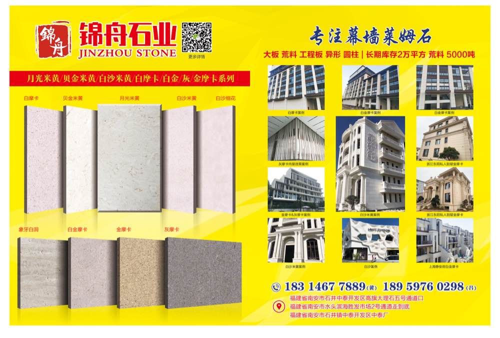 錦舟石業(yè)主營:白沙,白沙米黃,百里香,香貝,月光米黃,貝金米黃,伊麗莎白,貝寧白白摩卡,白金摩卡,金摩卡,灰摩卡,維納多,沉香米黃,沙浪米黃等幕墻萊姆石材