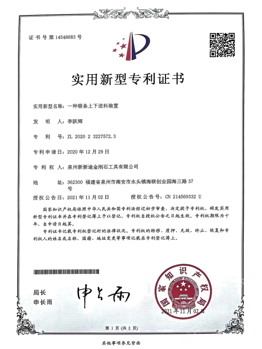 新途石材科技大理石奢石來料加工基地 各種專利