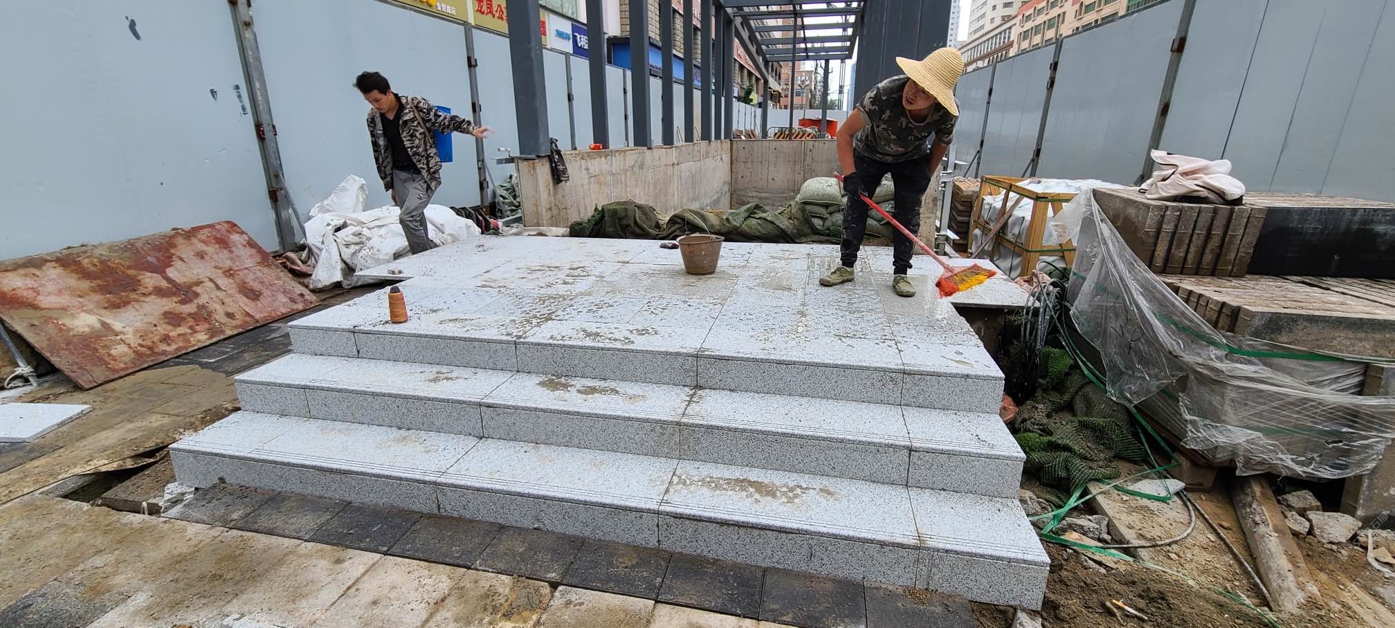 發(fā)布信息: 昆明地鐵1號(hào)線西北延線室外出入口,地面石材采用白麻火燒面鋪設(shè),墻面石材灰麻光面鋪設(shè)