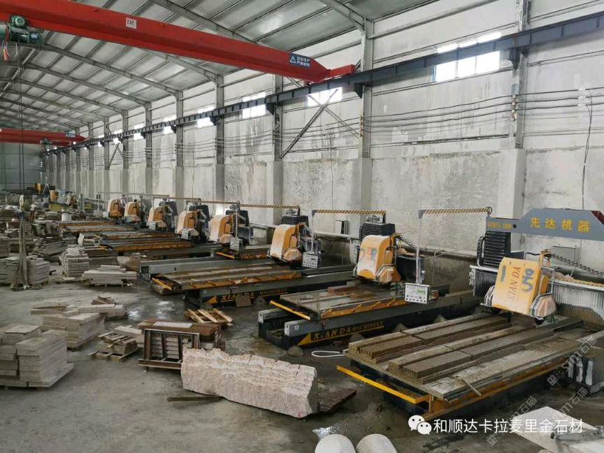 和順達(dá)第三分廠成立于2019年,占地面積50畝,位于奇臺(tái)縣奇臺(tái)縣閩奇石材工業(yè)園區(qū),目前車間技術(shù)工人80名,擁有大切鋸12臺(tái),中切機(jī)、紅外線切機(jī)15臺(tái),異形仿形機(jī)8臺(tái),繩鋸、桶鋸、柱座柱帽、花瓶欄桿機(jī)、龍門機(jī)、大型磨光機(jī)、倒邊機(jī)、荔枝面機(jī)若干。