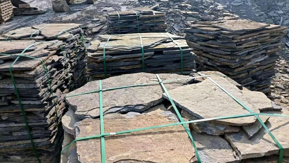 青石板碎拼:文化石地鋪石汀步石園林地鋪腳踏石銅板石