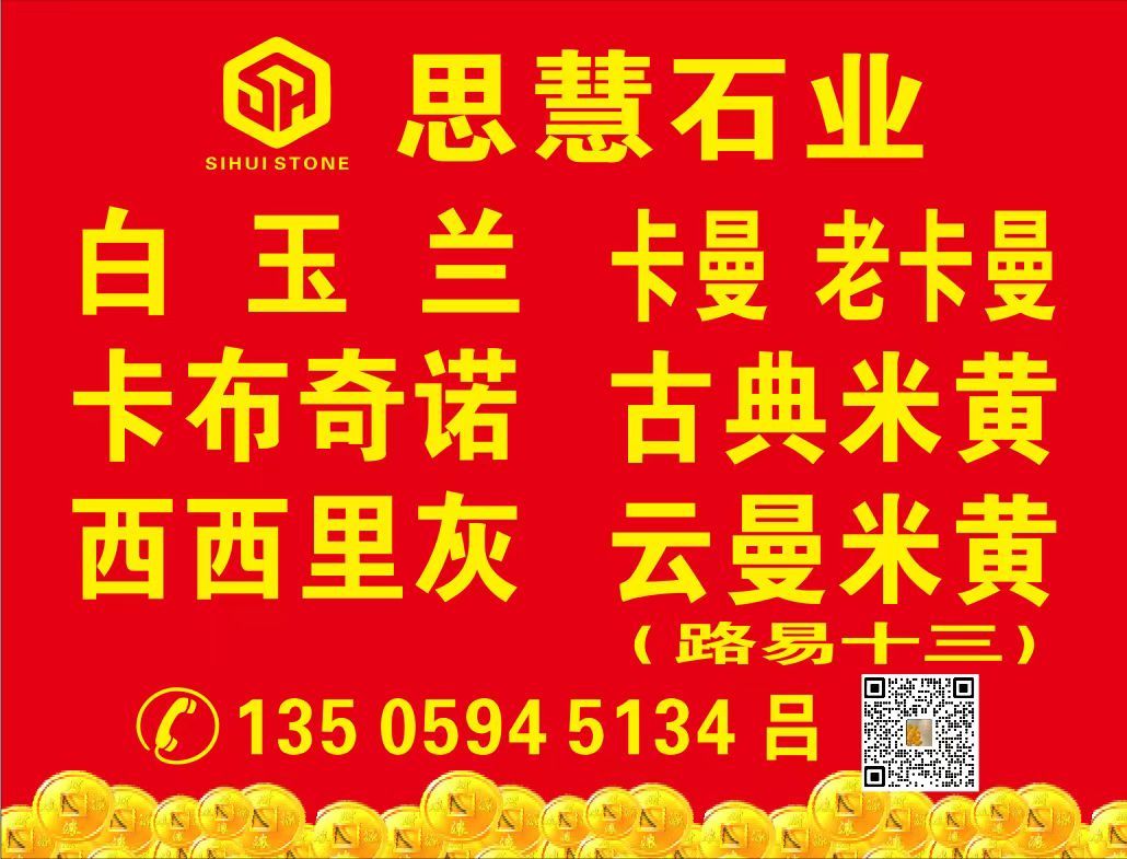 思慧石業(yè) 聯(lián)系人:呂    135****5134 查看 135****5134 查看 主營(yíng)范圍: 大板批發(fā)、荒料、大理石加工、礦山、其他、石材外貿(mào)、水刀拼花、異型加工、花崗巖加工、石材雕刻、 企業(yè)地址:福建泉州東升石材城4號(hào)門通道走到底左手邊D26
