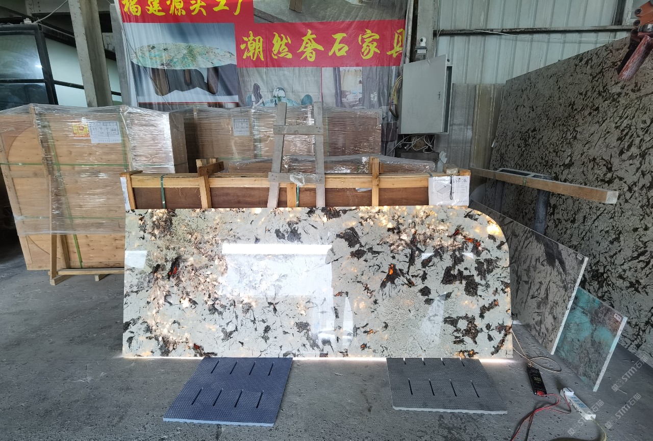 奢石家具廠鏡面封釉工藝源頭廠家高端定制透光奢石