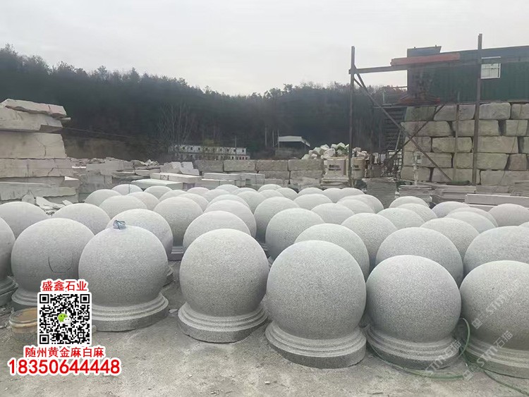 湖北白麻石材擋車石球路障石球車止石灰色石材阻車圓球