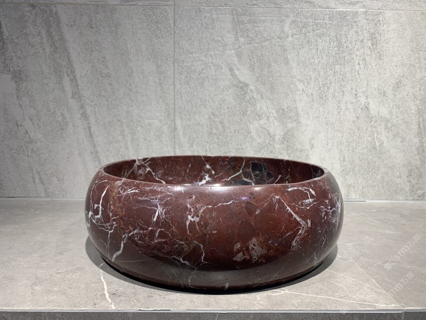 紫羅紅洗手盆 石材擺件托盤花瓶工藝品