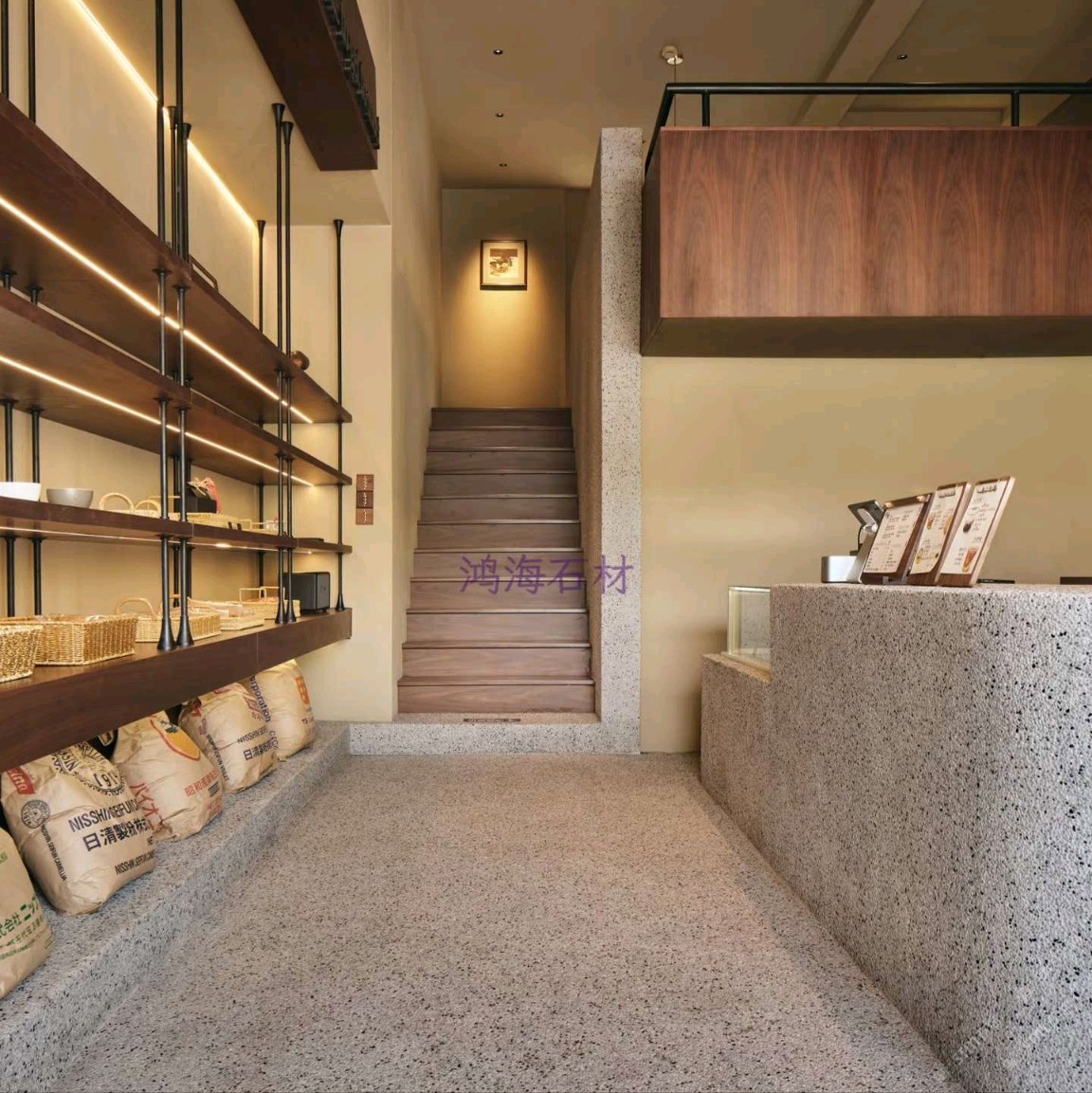 發(fā)布信息: 咖啡店設計干貨|水磨石 木格柵的組合 一進門就被水磨石打造的吧臺狠狠洗衣,顆粒感的肌理搭配溫潤的木質(zhì)吊柜,觸感和視覺的碰撞真的太妙了~ 墻面的“與你相識雖不晚”直接戳中內(nèi)心,旁邊的巨型可頌裝置既是裝飾又點明了品類,細節(jié)感拉滿。 動線設計也很舒服,點單區(qū)和取餐區(qū)劃分清晰,哪怕人多也不會覺得擁擠,把功能性和美學平衡得恰到好處。