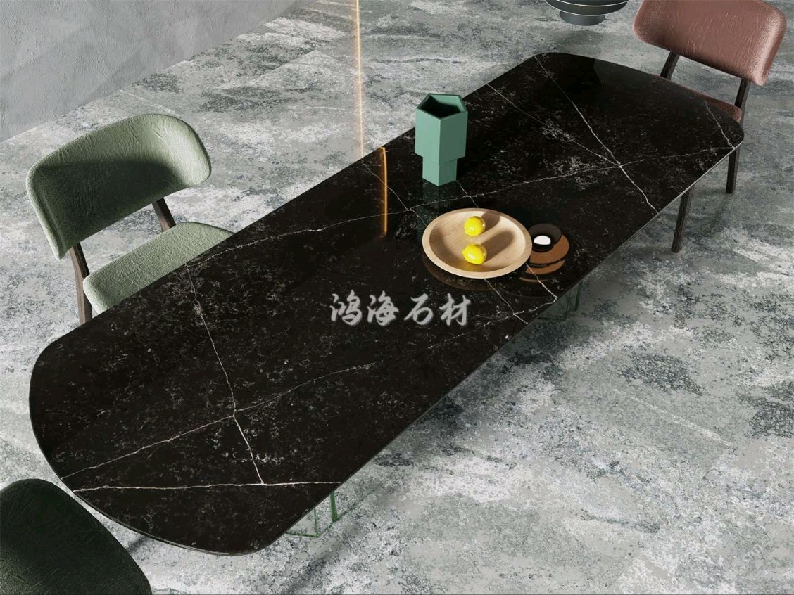 【鴻海石材·黑金石英石餐桌】