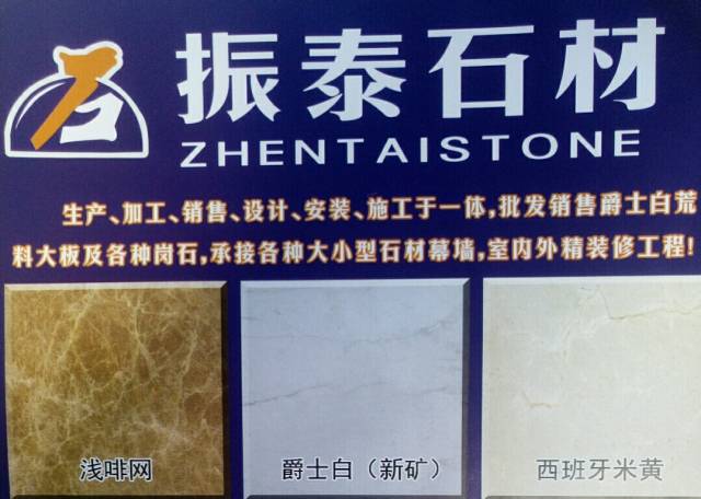 北京振泰石材 聯(lián)系人:吳女士    137****3097 查看 手機號碼:無 主營范圍: 大板批發(fā)、異型加工、人造石加工、 企業(yè)地址:河北廊坊香河石材城A0801、A0803