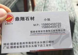 鼎翔石業(yè)主營產(chǎn)品:綠星1,銀珠,南非紅,黑金沙(中花),英國棕(4號礦),啡鉆1,藍(lán)珍珠,印度紅(小花),新綠星,加州金麻(黑底),美國紅麻,紅鉆企業(yè)地址:福建泉州水頭鎮(zhèn)下店工業(yè)區(qū)